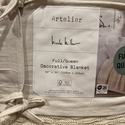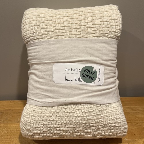 - NICOLE MILLER ARTELIER Full/Queen Woven Knit Bed Blanket Color Vanilla Cream NEW