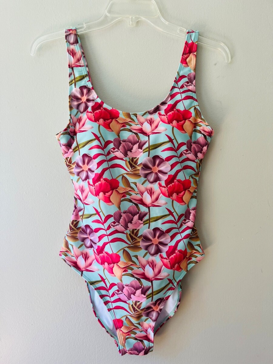 - Nicole Miller Sz M Floral Padded One Piece Swimsuit Mint Green Stretch
