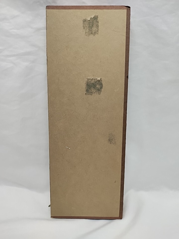 There's a little crease in the front left. Also, the back has some rips due to tape, see pictures please.