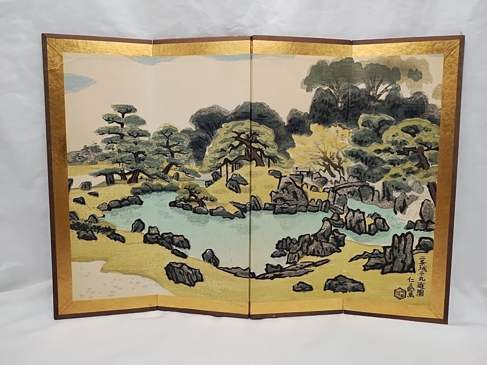 - Nijo Castle Maru Garden Japanese Folding Screen Art 16" X 11"