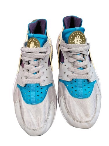 - Nike Air Huarache Men Sz 8.5 Wolf Grey Aqua White Running Shoes 318429-024