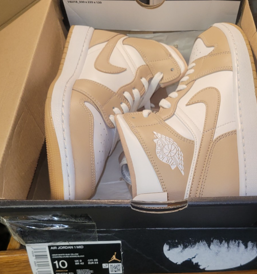 Nike Air Jordan 1 Mid Men's Size 10 Hemp/White-Gum Yellow 554724-271 BOX SHOW SOME DAMAGE SEE PHOTOS FOR CONDITION DESCRIPTION