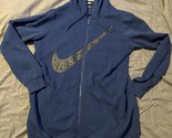 Nike Blue Full Zip Hoodie L Large Swoosh Graphic Longline 803640-423