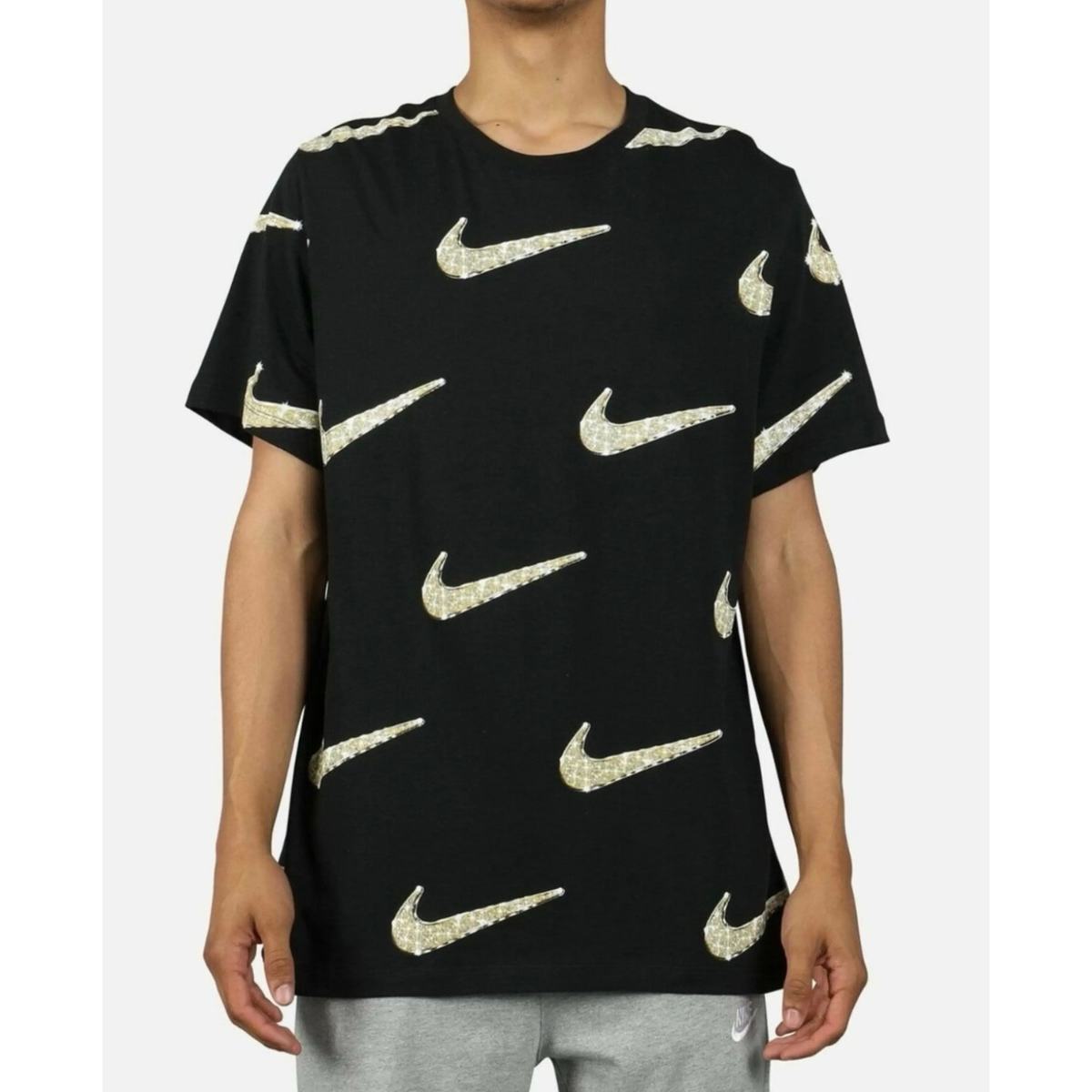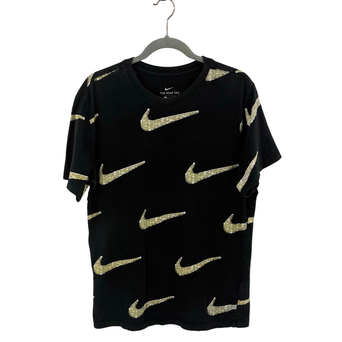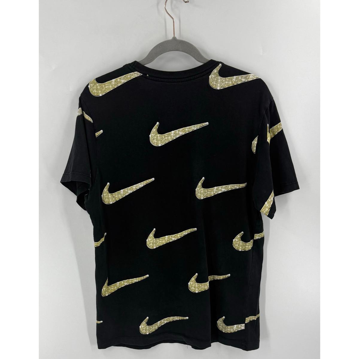 Nike Mens Bling T Shirt Size Medium Black Gold Diamond Swoosh Allover Print Tee