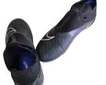 Nike Phantom GX Academy DF FG/MG soccer cleats in youth size 6.5 (men?s equivalent sizing). These feature Nike?s Ghost Lace system, which allows the laces to be tucked away for a smooth striking surface ? helpful for secure fit and performance. My son wore them for one soccer season (about 7?13 practices/games) before outgrowing them. They remain in good used condition with normal signs of wear from play. Perfect for players needing reliable traction and support on firm ground or multi-ground fields. Model: Nike Phantom GX Academy DF FG/MG (DD9465-040) Size: US Youth 6.5 (UK 6 / EUR 39 / CM 24.5) Color: Black with Blue accents Silver swoosh Features: Ghost Lace hidden lacing system, NikeSkin upper, Dynamic Fit collar Approx. wear: 7?13 uses, still plenty of life left Condition: Pre-owned, good used condition, some scuffing and sole wear