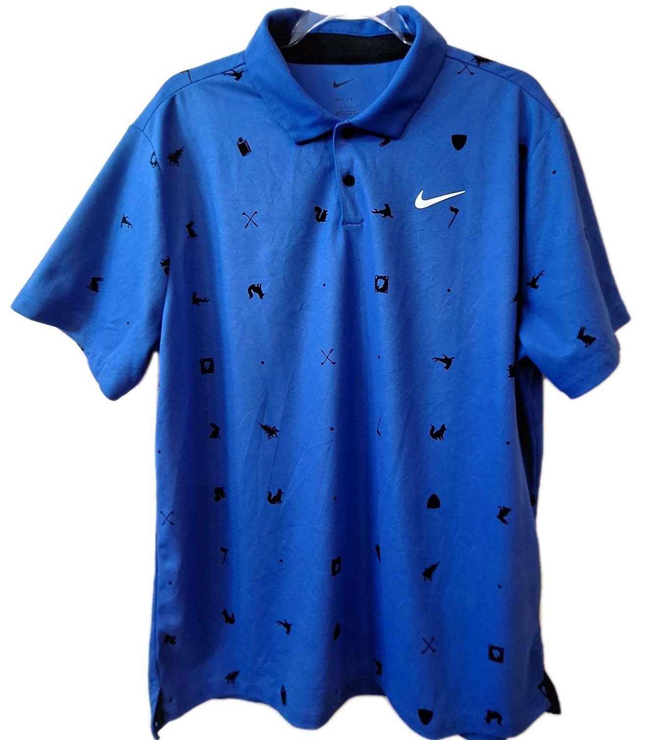 - Nike Polo Shirt Mens Large Hyper Royal Blue All Over Print Golf DriFit Tour 24