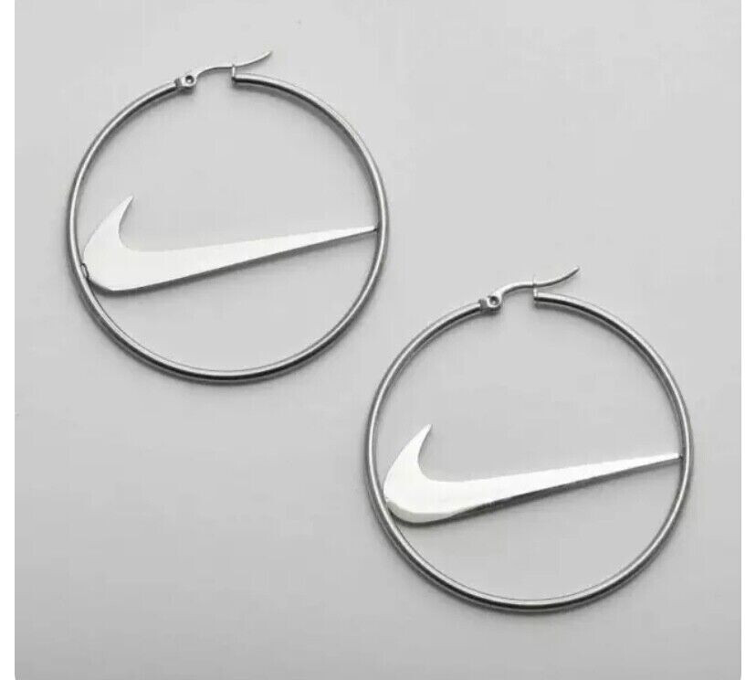 Nike Swoosh Silver - Plated Metal Hoops Clasp Earrings, Pair, For Women Hoop -Lightweight, silver plated metal earrings -Size: each earring is 1.9 inches in diameter and is in a classic hoop style with the Nike Swoosh in the middle -Nickel and lead free for its wearer's safety -Secure clasp ease and comfort to wear Fast and Free Shipping You're already purchasing the item. Why pay additional for shipping, especially slow shipping? We get your order shipped out within 1-business day and delivered to your doorstep as quickly as possible. Competitive Pricing With our dynamic pricing model, our prices are always competitive. Our prices are some of the lowest that you will find on the internet. Rest assured that you're getting a good deal when purchasing with us. 30-day Money Back Guarantee We are committed to making sure that you leave this transaction satisfied. If you're unhappy with the product for any reason, you may return it back for your money-back or a replacement within 30 days. No questions asked!