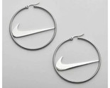 Primary image for Nike Swoosh Silver - Plated Metal Hoops Clasp Earrings, Pair, For Women Hoop