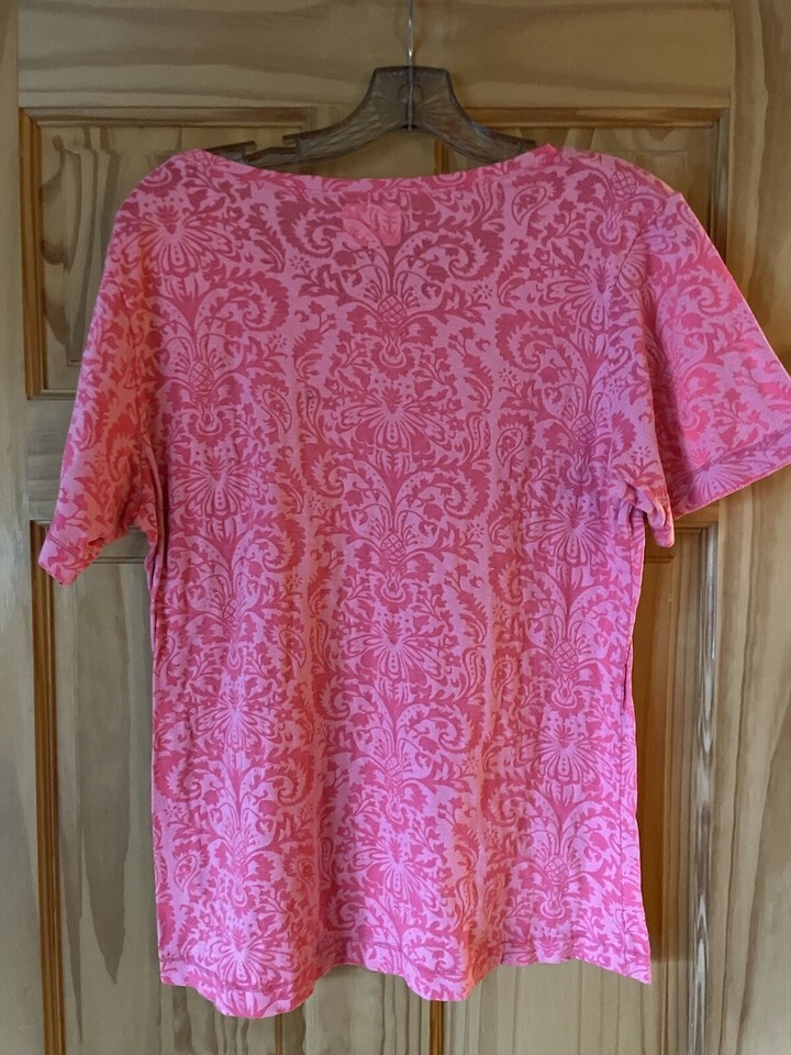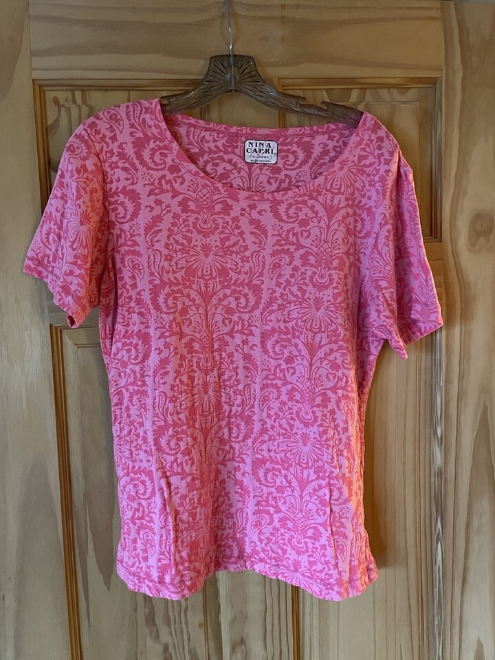 This Nina Capri pink T-shirt is a must-have addition to your wardrobe. With its comfortable fit and stylish design, it's perfect for everyday wear. The shirt is made from high-quality materials to ensure durability and long-lasting wear. Available in size XL, it's perfect for women who want to look and feel great in their clothes. The shirt comes in a beautiful pink color that's sure to turn heads.