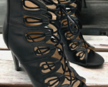Brand: Nine West Model: Leslie Material: Leather Color: Black Size: 7M Features: Heel Height: 4" Open toe Lace up design Back zippers Lightly padded footbed Stiletto Heel Retail: $109 Excellent pre-owned condition with no defects Buy with confidence. Check out our reviews. Also, happy to combine shipping to save you when you buy multiple items.