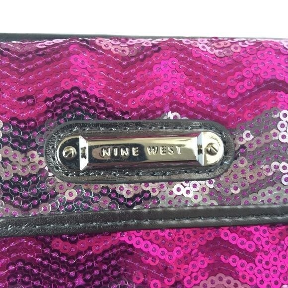 - Nine West Pewter Pink Sequin Glitter Frame Clutch Wallet Purse