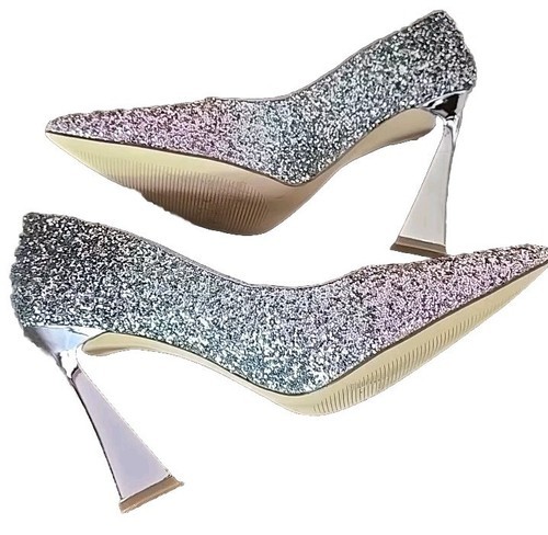 NINE WEST ~ WNTRENDZP3 ~ Gradient Glitter ~ 4" SILVER Heel Pumps ~ Size 11M