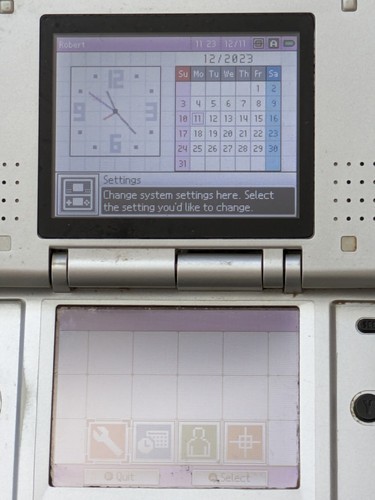Decouvrez la nostalgie du systeme Nintendo DS d'origine dans cette couleur gris argente electrique. Cette console de jeu portable est parfaite pour les joueurs de tous ages, avec le controle vocal comme l'une de ses fonctionnalites. Il est livre avec un chargeur et a une capacite de stockage de 1 Go. Sans region et compatible avec une variete de jeux Nintendo DS, ce systeme est parfait pour les jeux en deplacement. Mettez la main sur ce systeme de lancement original Nintendo DS, modele NTR-001, et profitez d'heures de divertissement sans fin.