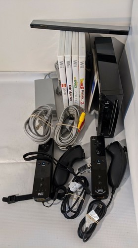 - Nintendo Wii Bundle Black Console 2 Controllers 5 Games Sensor All Cables