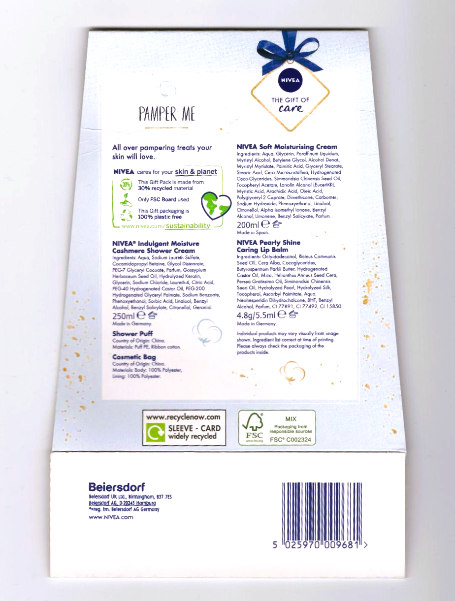 Nivea a well known brand offers you they're pamper gift set to use at your leisure.