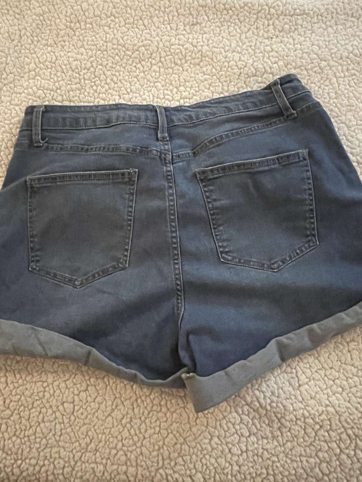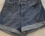 No Boundaries Junior's Sz 17 High Rise Mom Denim Jean Shorts Rolled Cuff