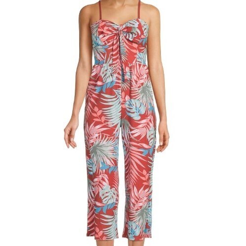 No Boundaries ~ XS (1) ~ Clay Brick Floral ~ Tie Front ~ Strapless ~ Jumpsuit