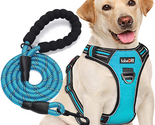 No Pull Dog Harness Adjustable Reflective Oxford Easy Control Medium Large Dog Harness with a Free Heavy Duty 5Ft Dog Leash (L (Neck: 18"-25.5", Chest: 24.5"-33"), Blue Harness+Leash)