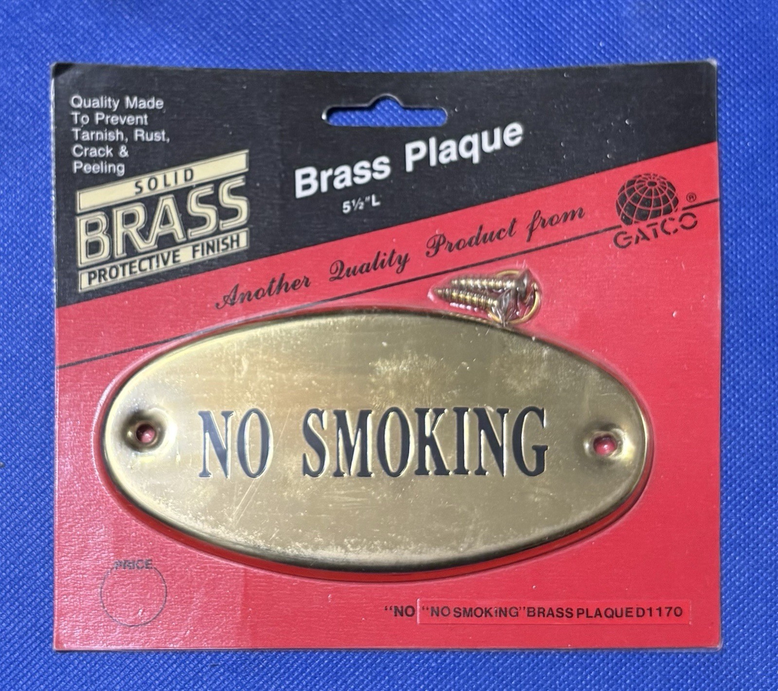 - No Smoking Plaque Solid Brass Wall Mount Warning Sign New In Package By GATCO
