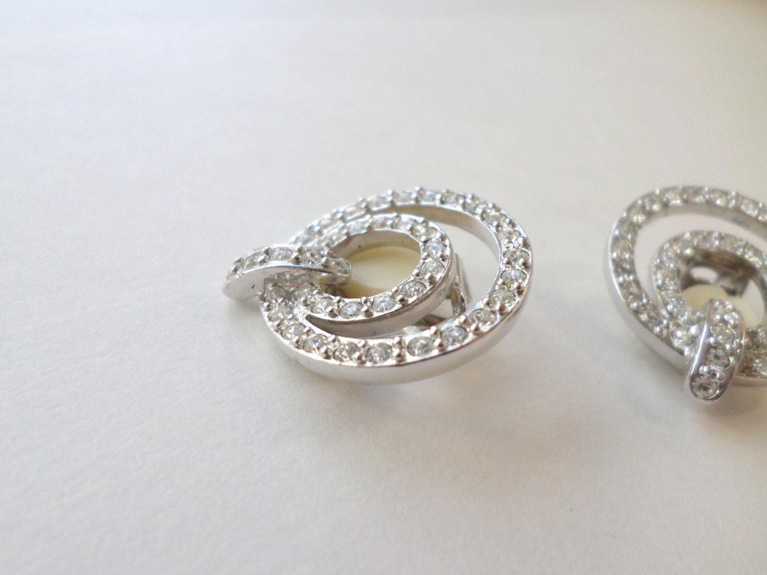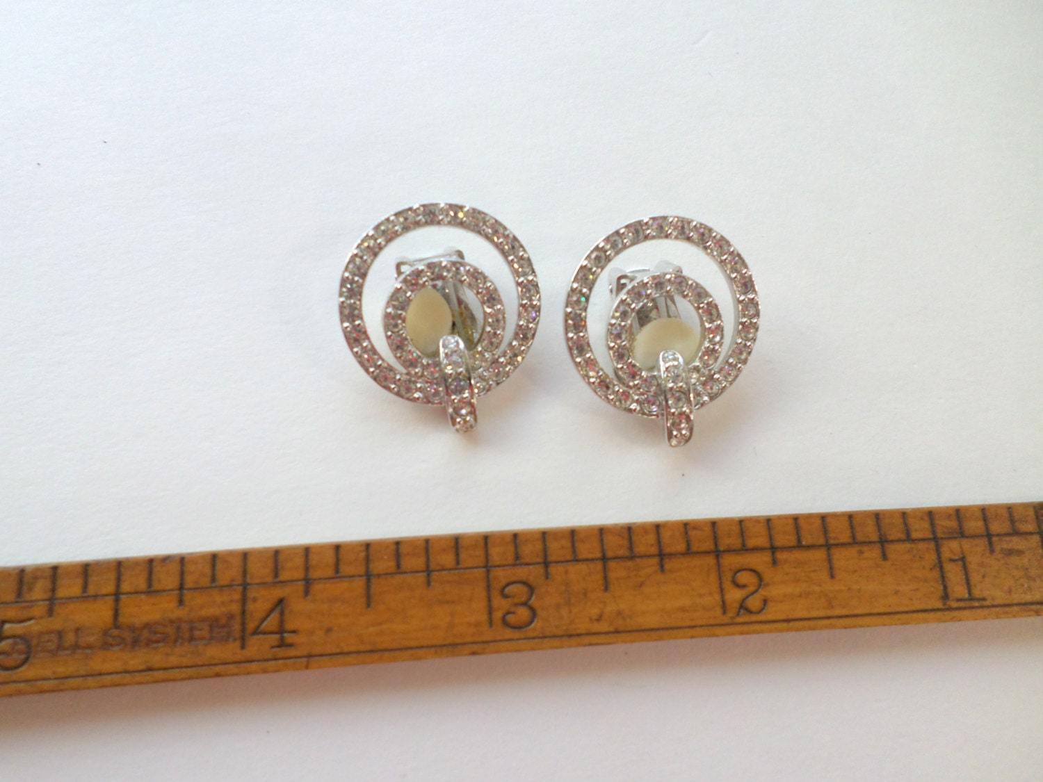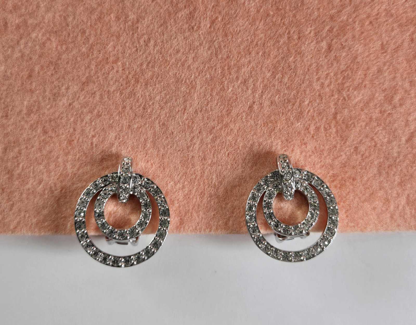 ?Style/Features: Double circle clip earrings, pave rhinestones