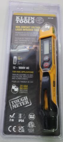 You are Buying Brand New And Factory Sealed Non-Contact Voltage Tester Pen, 12-1000 AC V with Infrared Thermometer Non-Contact Voltage Tester provides non-contact determination of AC voltage in cables, cords, circuit breakers, switches, outlets and wires, and AC voltage in security, entertainment, communications, environmental control, and irrigation systems