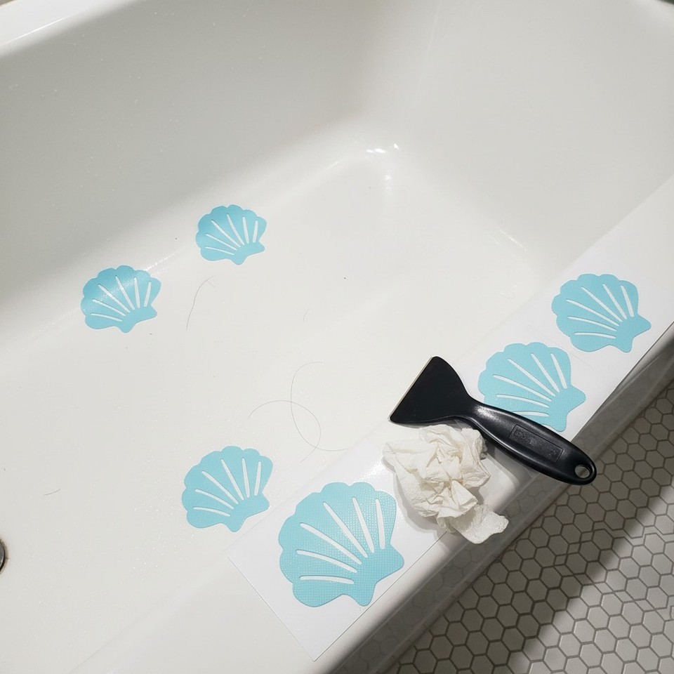 Easy installation: Simply peel and stick on your bathtub or shower floor.