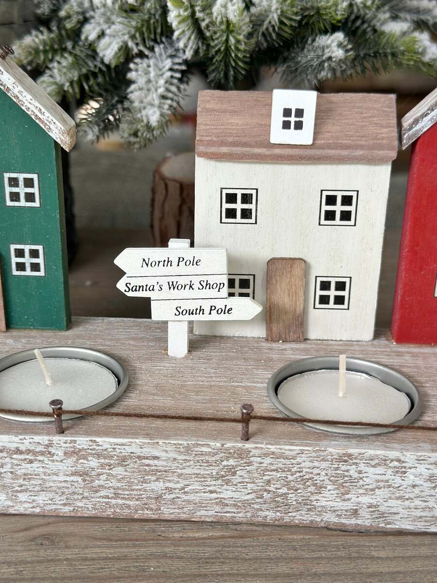 - Nordic Red House Scene Tea Light Holder