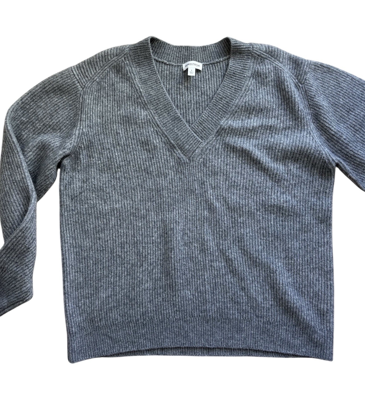 Primary image for Nordstrom Womens Baby Alpaca Wool Blend V-Neck Sweater Gray Grey, L Ribbed