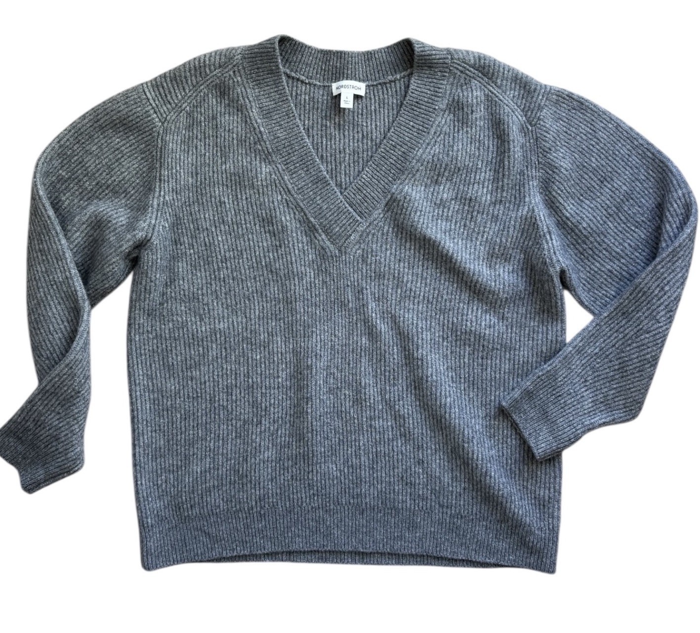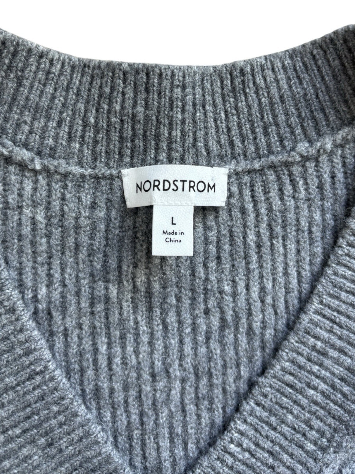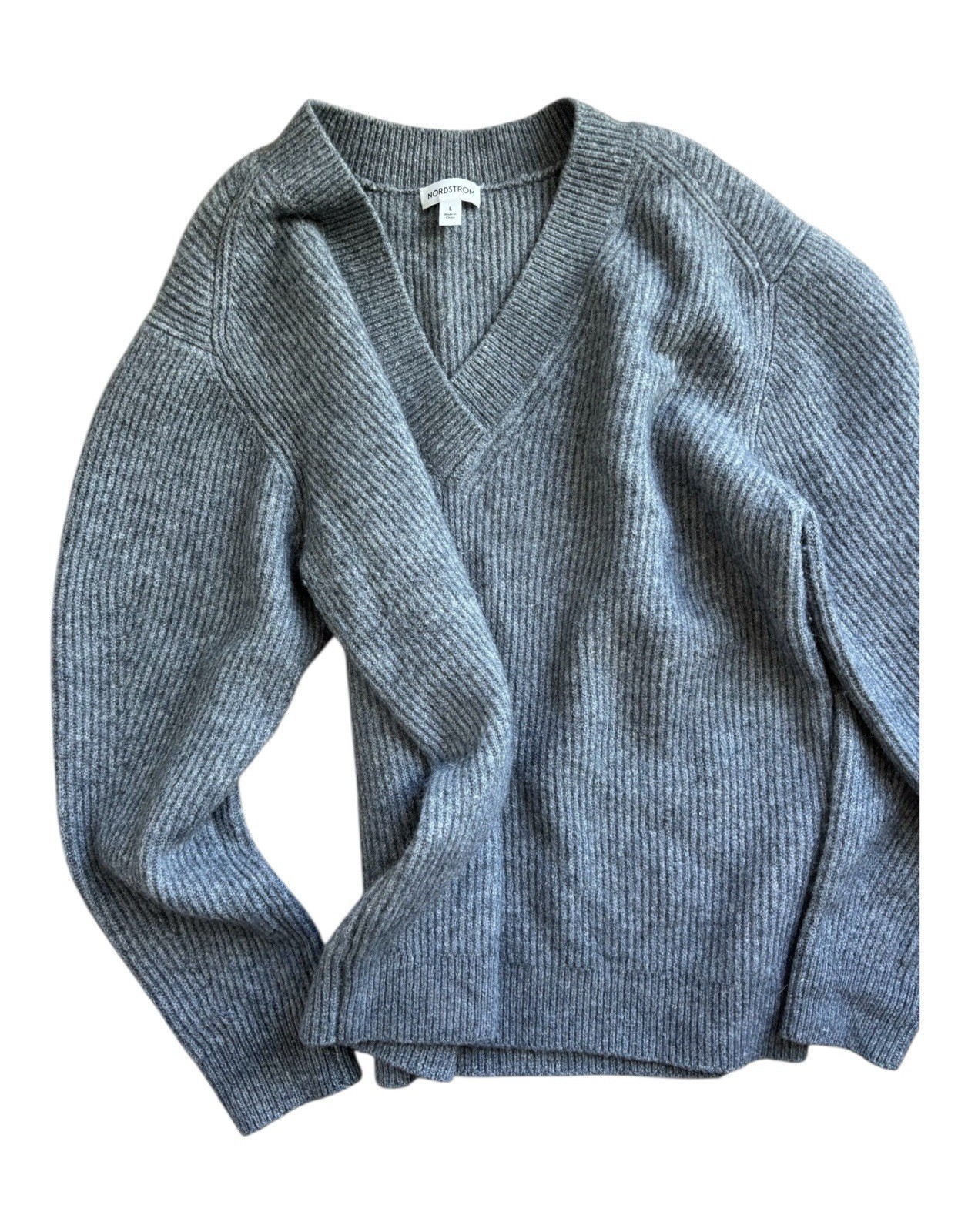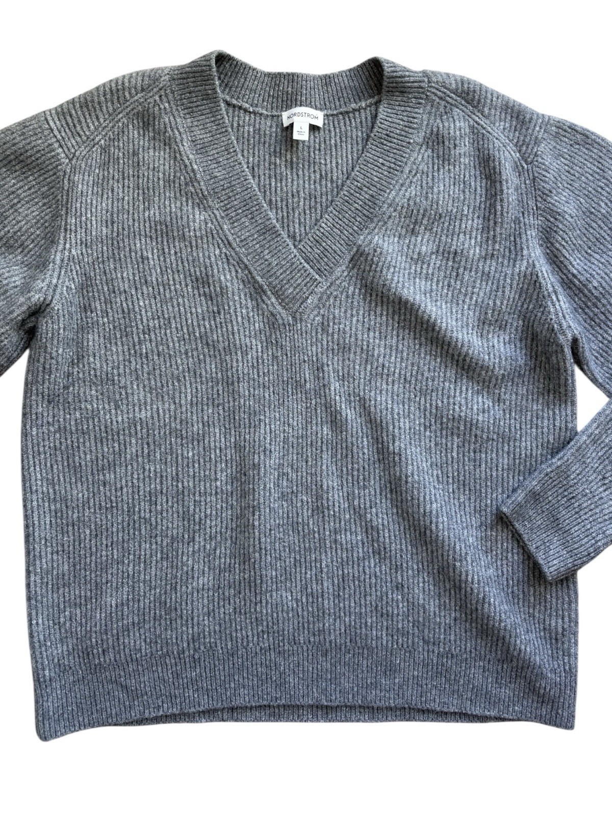 Nordstrom Womens Baby Alpaca Wool Blend V-Neck Sweater Gray Grey, L Ribbed