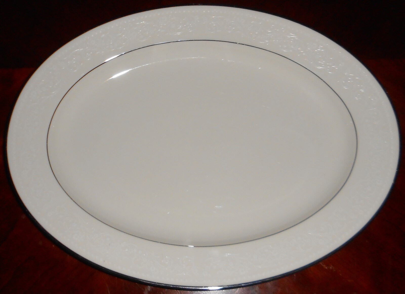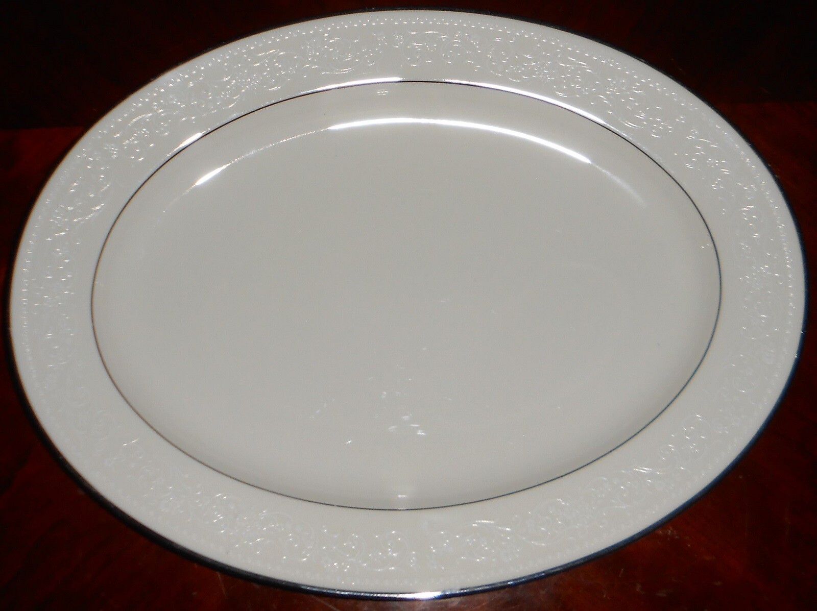 This is the 16 1/8" x 12" Oval Serving Meat or Turkey Platter from Noritake Ivory China in the Sorrento Pattern and Made in Japan. It is in good pre-owned condition with no chips or cracks - has some minor utensil usage and two tiny specks where inner platinum band is worn. sale TERMS AND CONDITIONS: Please email me with any questions. I am occasionally out of town for 2-3 days at a time but I will attempt to answer any questions immediately or upon my return. Payment is expected within three working days from purchase date unless other arrangements have been made. I ship via USPS Priority Mail (2-3 working days delivery)or USPS Ground Advantage (2-5 working days delivery) or FedEx Home Delivery (5-7 working days delivery)depending on which method you select at checkout. Purchases may be subject to applicable State Sales Tax if you live in a State that collects sales tax from out of State purchases. THANKS FOR LOOKING! SLF#88-UD