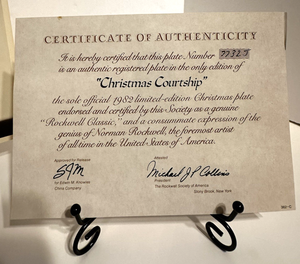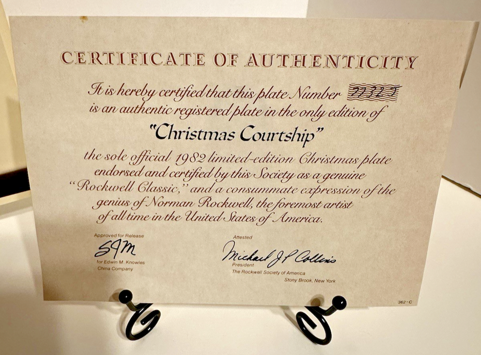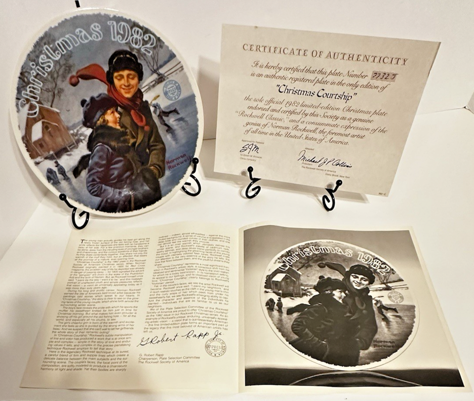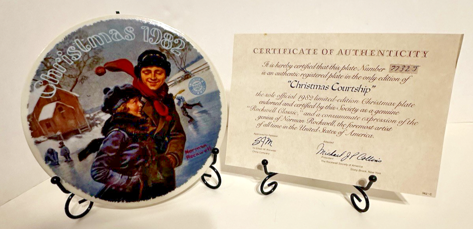 - Norman Rockwell "Christmas Courtship" Vintage 1982 Christmas Plate COA & Box