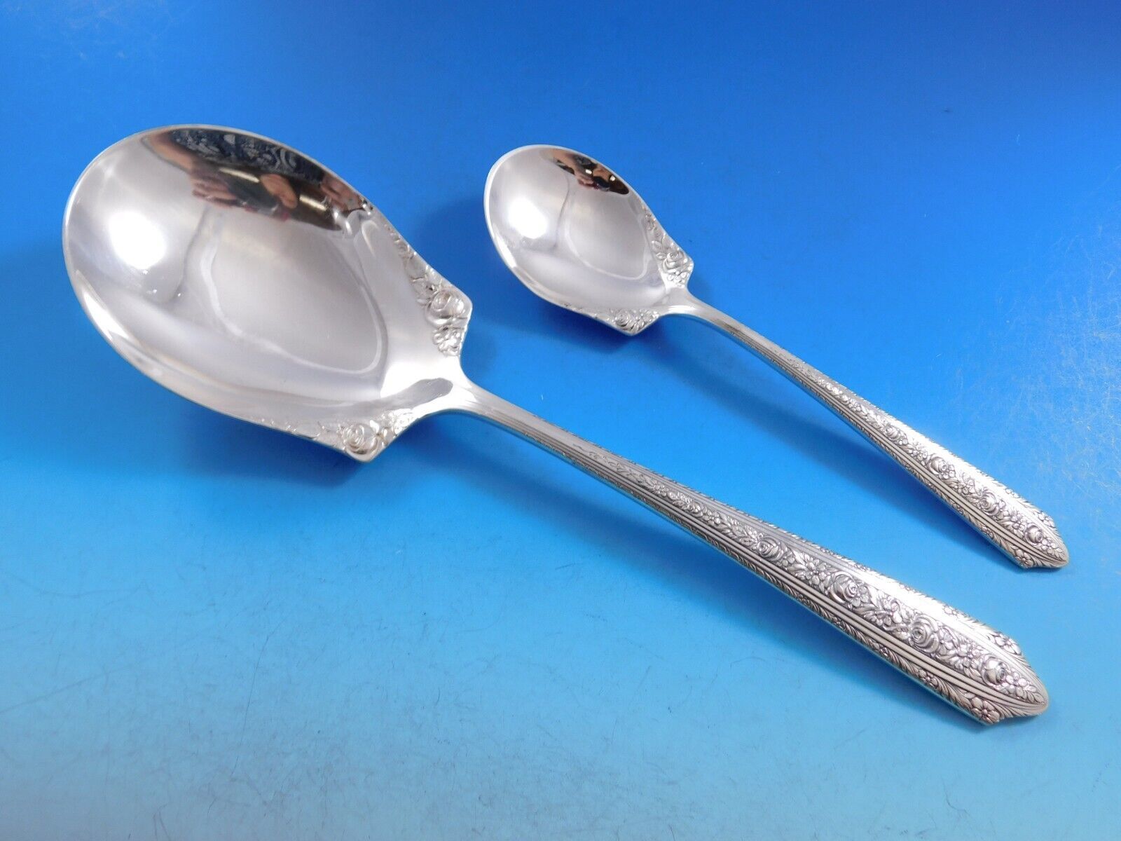 Large Normandie by Wallace Silver Flatware set with rose and daisy design, 117 pieces. This set includes: