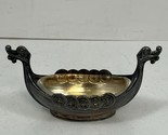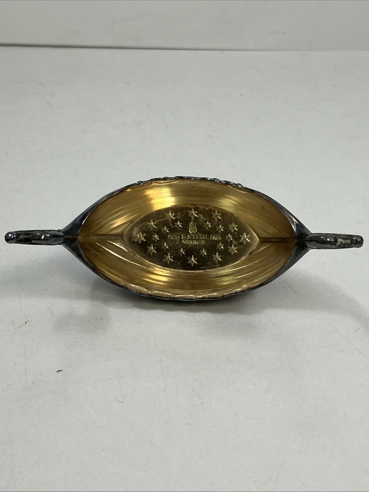 - Norway 925 Sterling Silver Viking Ship 3.5” Salt Cellar & Clear Glass Insert 17g