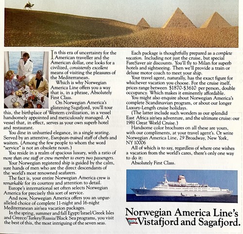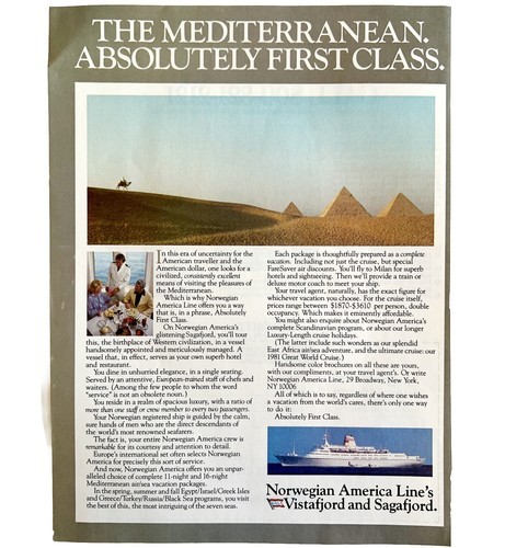 Norwegian America Line Cruise Ship 1979 Advertisement Vistafjord Sagafjord DWKK6