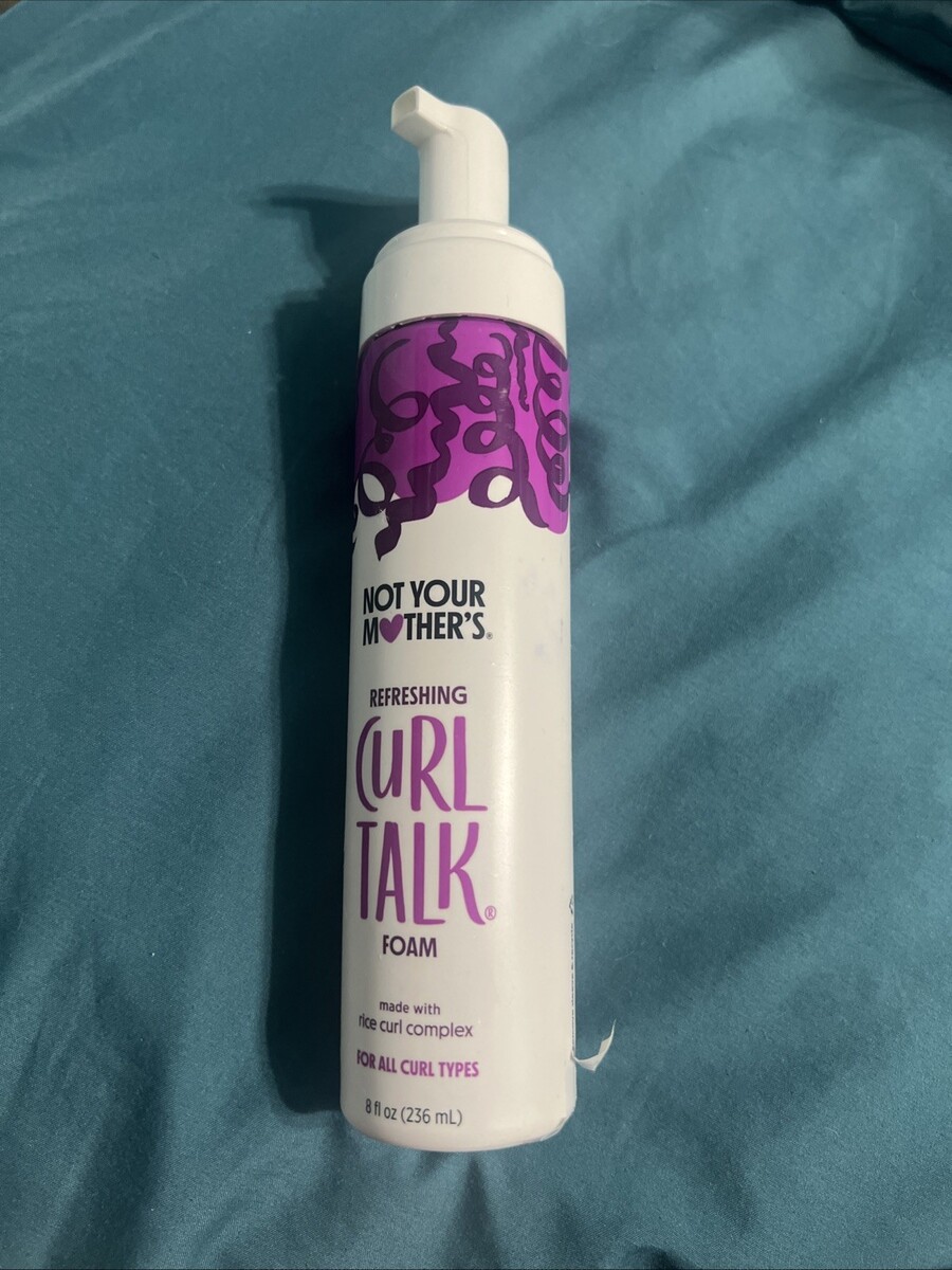 Not Your Mother's Curl Talk Refreshing Curl Foam 8 Fl. Oz. Rice Curl Complex. New bottle. Cap is missing. The plastic wrap around the bottle is starting to peel. See pictures