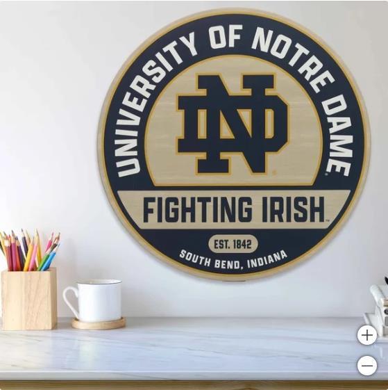 - Notre Dame Fighting Irish Wall Sign Navy Blue Gold Wood Decoration Round College