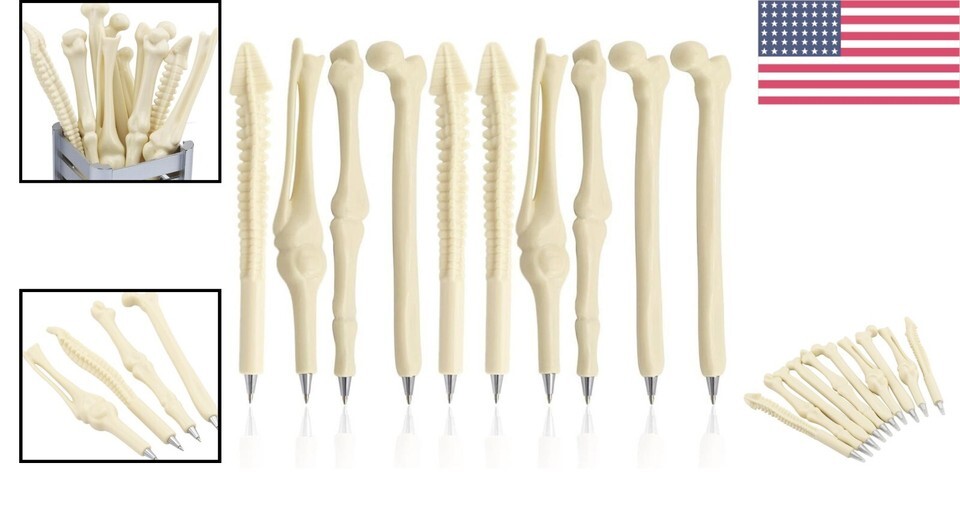 Novelty Skull and Bone Theme Ballpoint Pen Set - Perfect for Students & Doctors