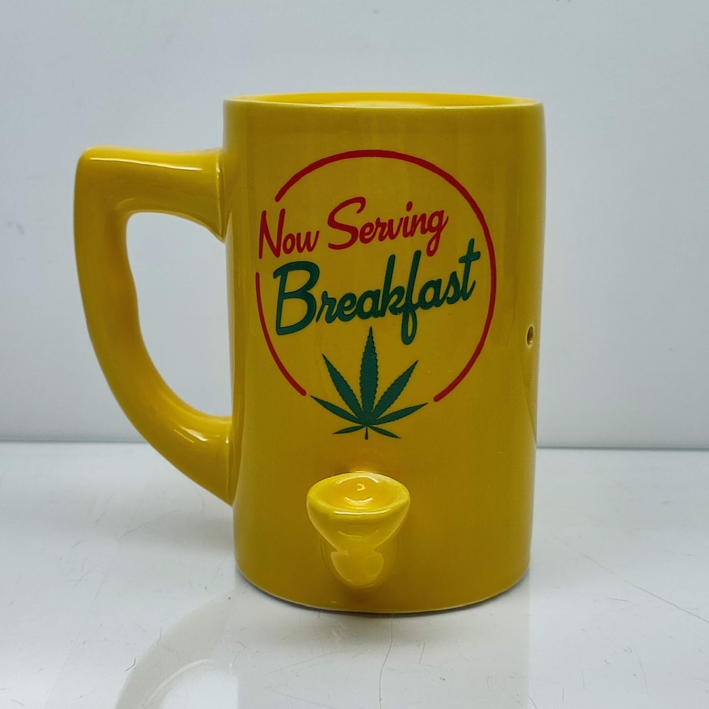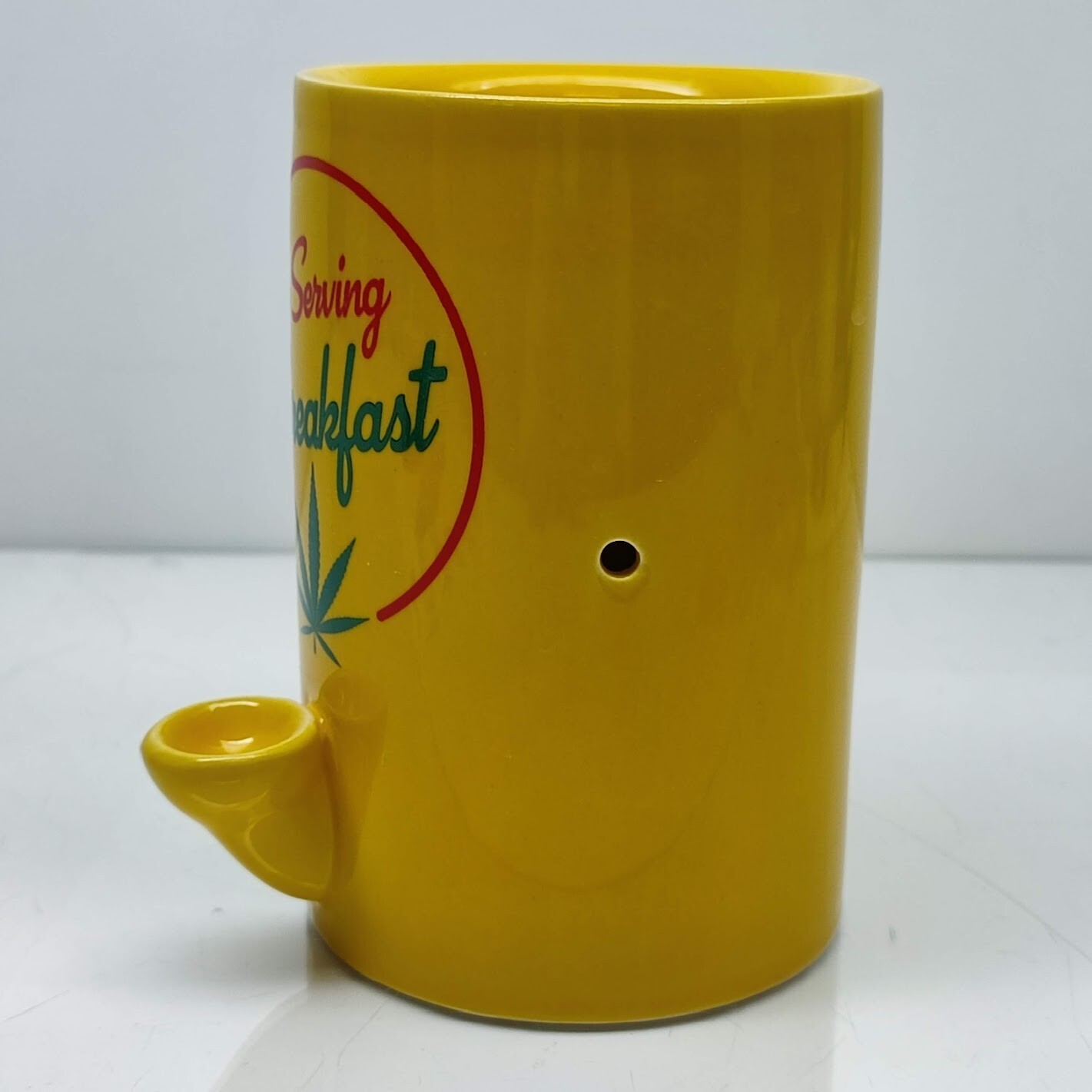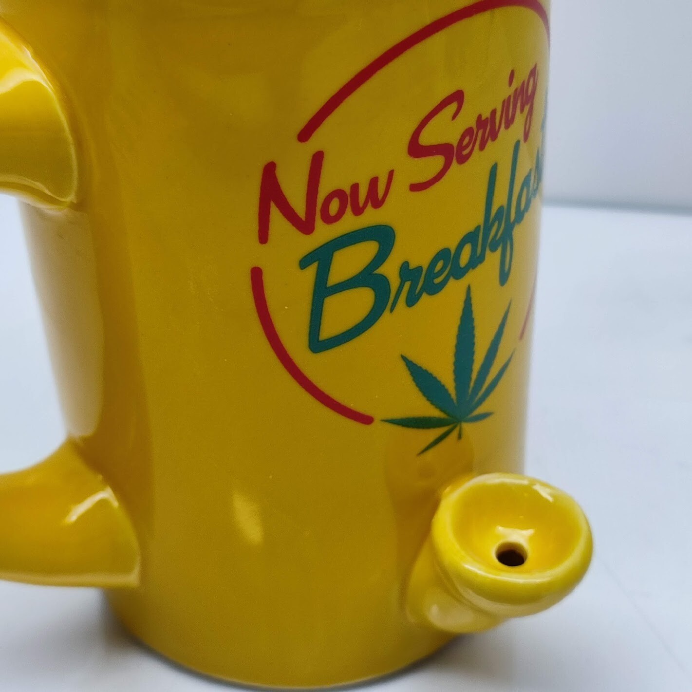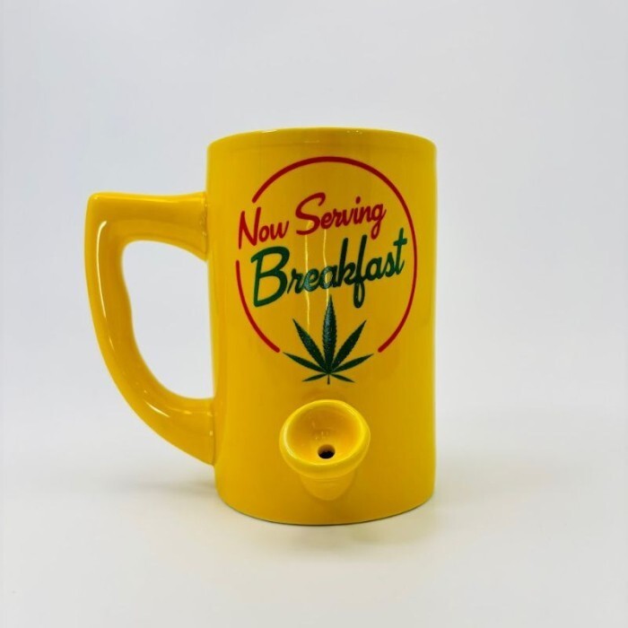 Now Serving Breakfast Hand Pipe Coffee Mug Bowl Cup Smoke Gift Yellow Ceramic