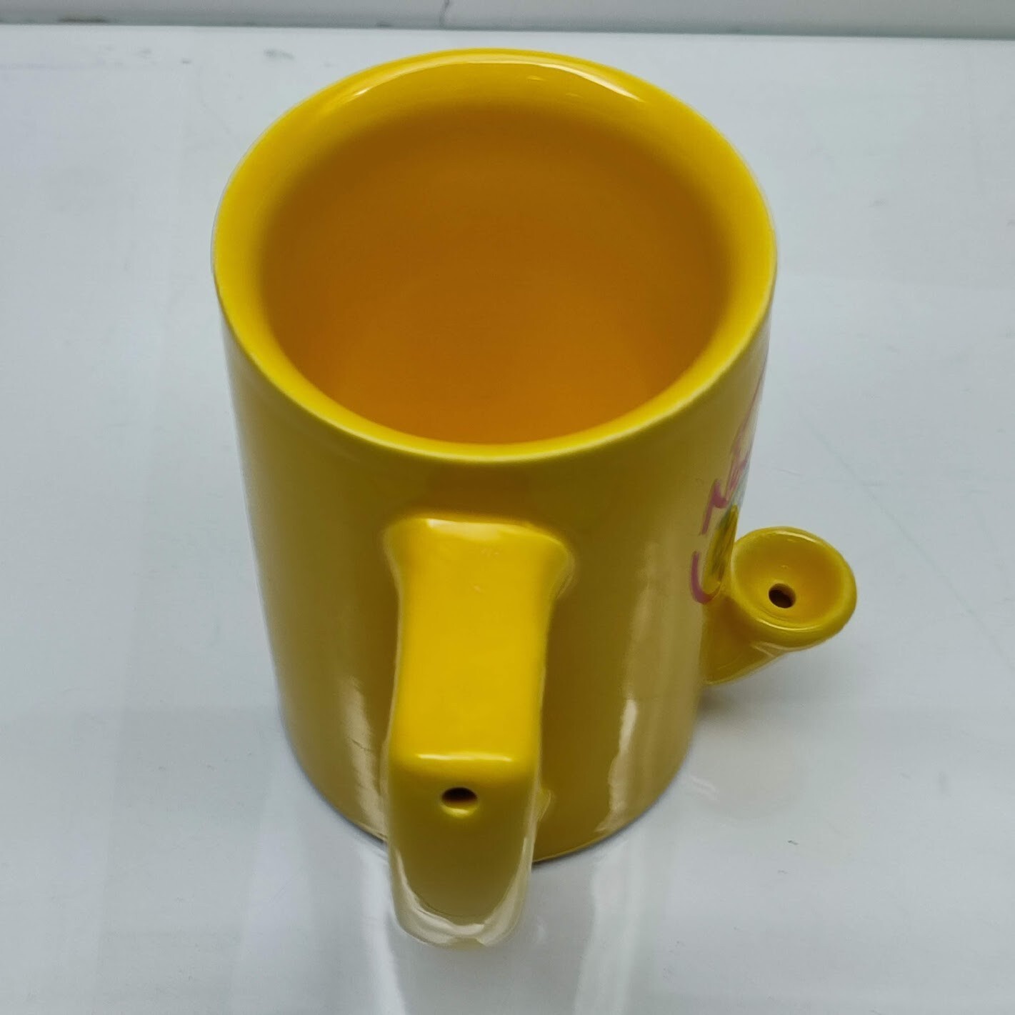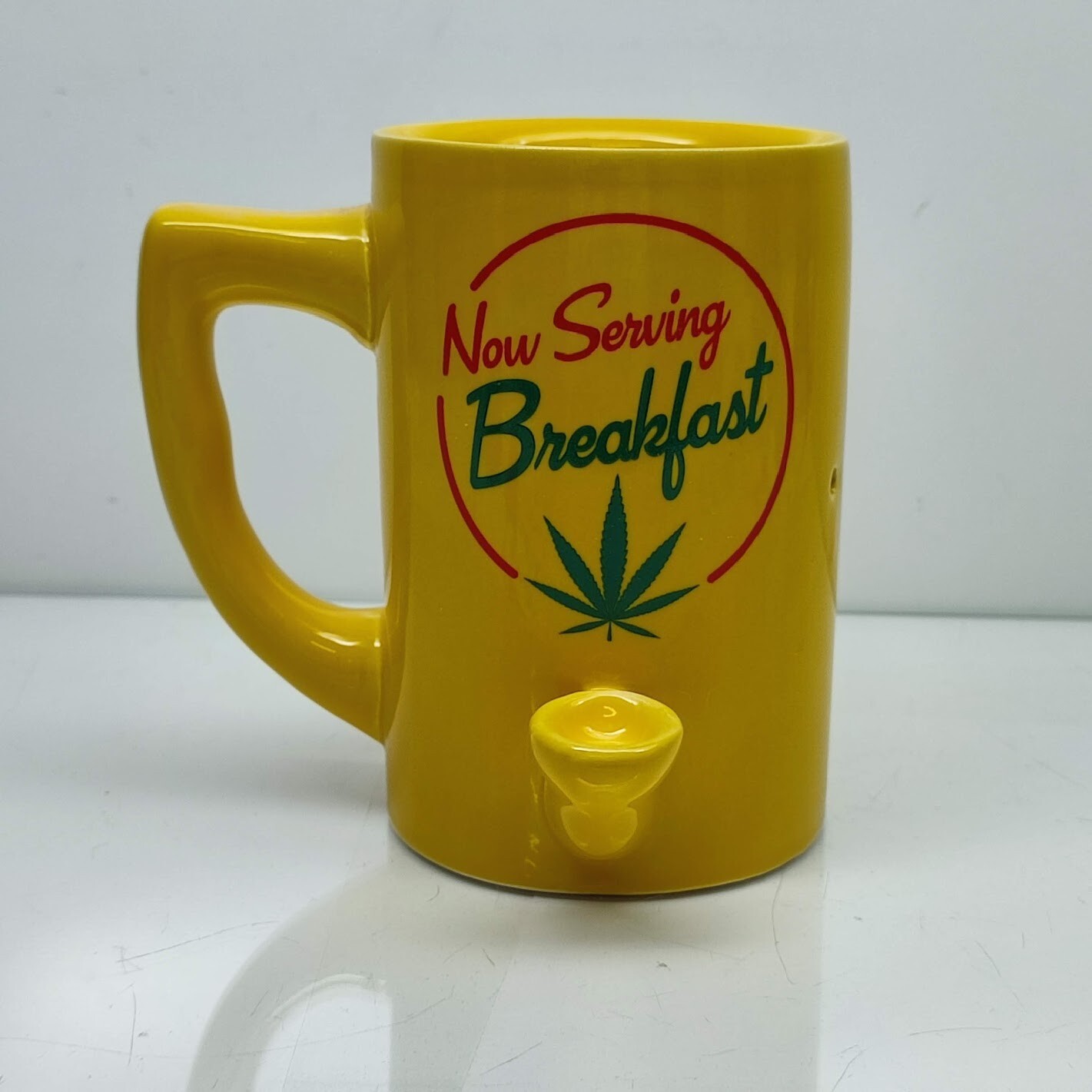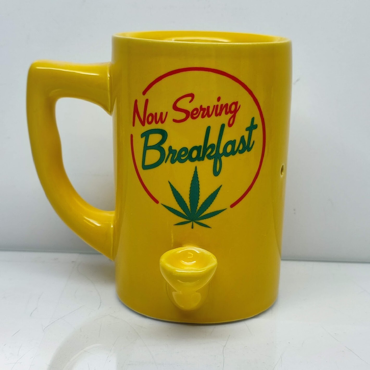 Now Serving Breakfast Hand Pipe Coffee Mug Bowl Cup Smoke Gift Yellow Ceramic