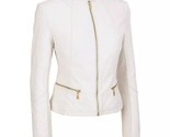Nueva chaqueta de cuero blanca para mujer 100 % piel de cordero real motocicl...