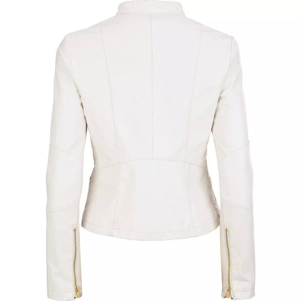 Nueva chaqueta de cuero blanca para mujer 100 % piel de cordero real motocicleta motociclista muy suave/ us