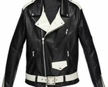 Nueva chaqueta de motociclista de moda suave pura genuina de cuero NEGRO eleg...