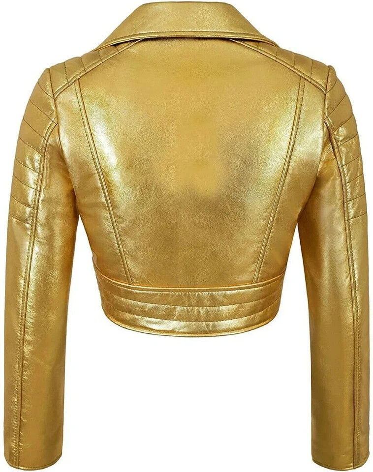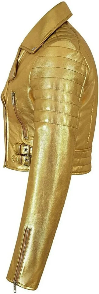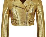 Nueva chaqueta recortada para mujer dorada hecha a mano de cuero piel de cord...