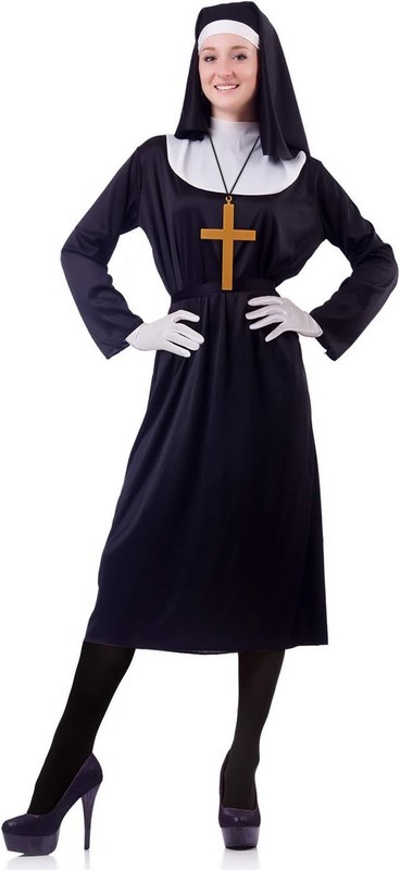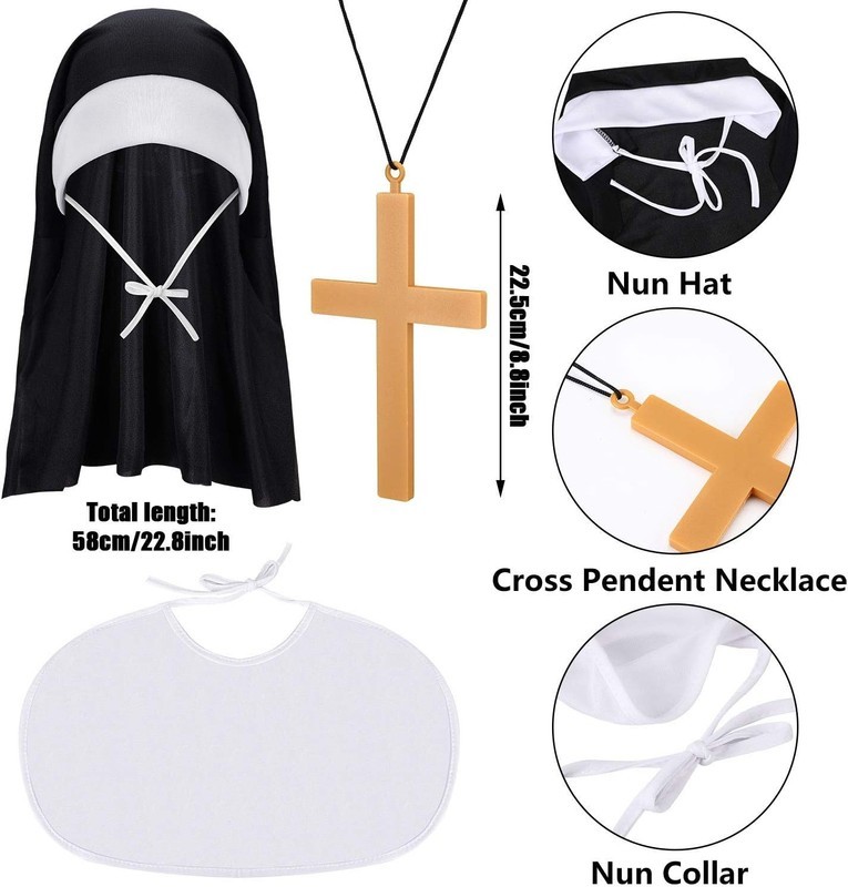 - Nun Costume Accessory Set - Nun Headpiece Cross Pendant Necklace High Socks
