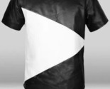 Nuova t-shirt uomo vera pelle di agnello in morbida pelle elegante fatta a...