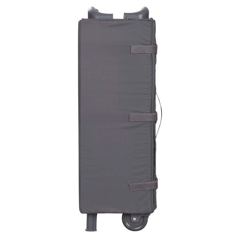 The Baby Trend nursery center playard is ideal for any living space. The lay-flat full-size bassinet is perfect for nap time, allowing your baby to sleep soundly on the flat padded mattress. The wheels are equipped with brakes for easy mobility and added security. The removable mobile with adorable animal toys is designed to hold your baby's attention during playtime. As your child grows, simply remove the lay-flat full-size bassinet and the nursery center becomes a safe environment for your little one to play and explore. When it's time to travel, quickly collapse and fold the nursery center into the included tote bag and go. The Baby Trend nursery center playard is the perfect all-in-one solution for sleeping and playtime.