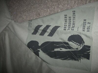 Il s'agit d'un sweat-shirt RARE Harden fabrique par Adidas. tu ne trouves plus ca. Epuise. Comprend Harden Roaring (probablement apres un dunk fou) et le dicton Brothers through everything.