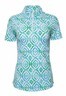 NWT - New With Tags Ladies Womens IBKUL formally ICIKULS UPF 50 LIZ DENIM Short Sleeve Mock Neck Golf Tennis Shirt Top - Size XXL