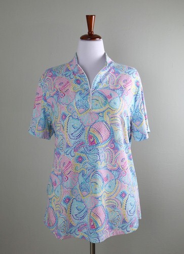 - NWT Ladies IBKUL PASCHA NAVY SEAFOAM Short Sleeve Mock Golf Shirt S M L XL & XXL
