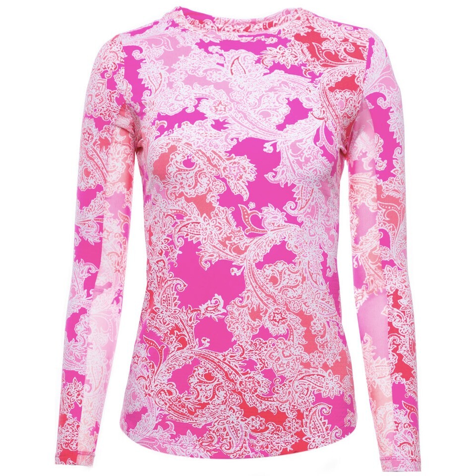 NWT - New With Tags Ladies Womens IBKUL formally ICIKULS UPF 50 PASCHA PINK CORAL Long Sleeve Crew Neck Golf Tennis Shirt Top - Sizes Small, Medium, Large, XL XXL